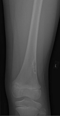 Bone tumours in children may be benign or malignant. Malignant tumours are rare but potentially life-threatening and must be identified early. Common sites include the distal femur and proximal tibia, so atypical or persistent knee pain should prompt further assessment. Radiographs should include the adjacent long bones above and below the joint.